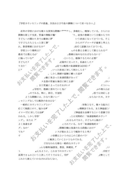 『学校カウンセリングの意義、方法および今後の課題について述べなさい