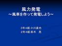 最後になりましたが,僕たちは風車に興味を持ち,そのしくみや発電する方法を知ること,そして実際に自分の手で風車を作ることで電気を起こすことが,...