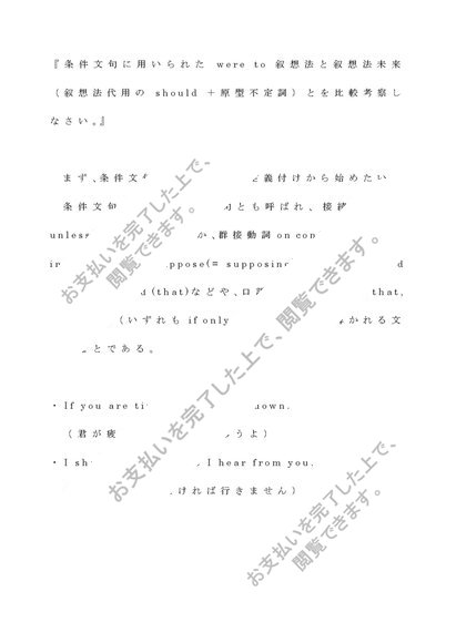 『条件文句に用いられたwere to叙想法と叙想法未来(叙想法代用のshould +原型不定詞)とを比較考察しなさい