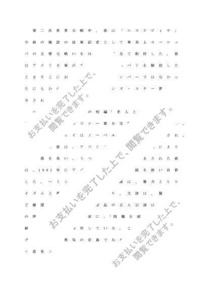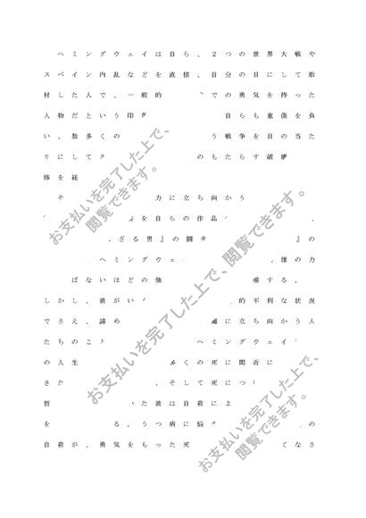 英文を日本語で要約しなさい。また、本文70行目以降に述べられているHemingwayの描くheroesやcourageに対するあなたの印象を述べなさい。