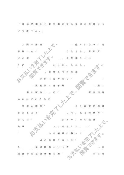 乳幼児期から老年期に至る発達の特徴について述べよ
