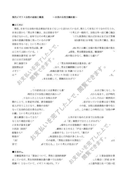 イギリス文化「現代イギリス女性の結婚と職業~日英の女性労働比較~」