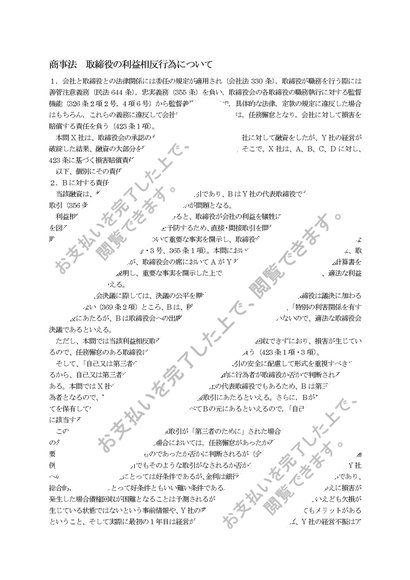 商事法 取締役の利益相反行為について