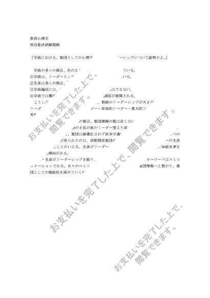 教育心理学 科目最終試験問題 お得セット 6設題入