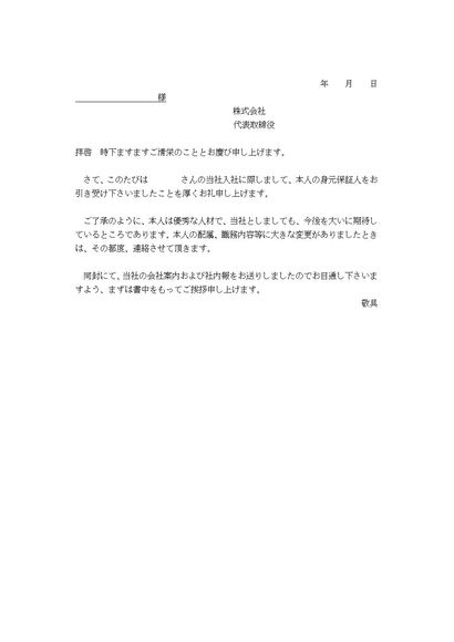身元保証人への挨拶状