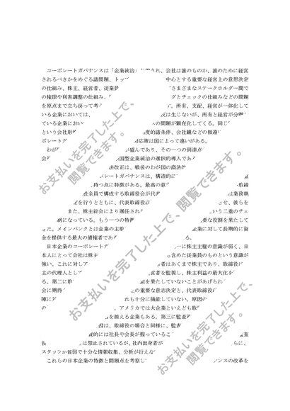 経営学 日本企業のコーポレート・ガバナンスの特徴と改革について