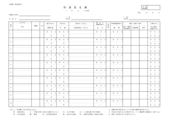 作業員名簿1(全建統一様式第2号)
