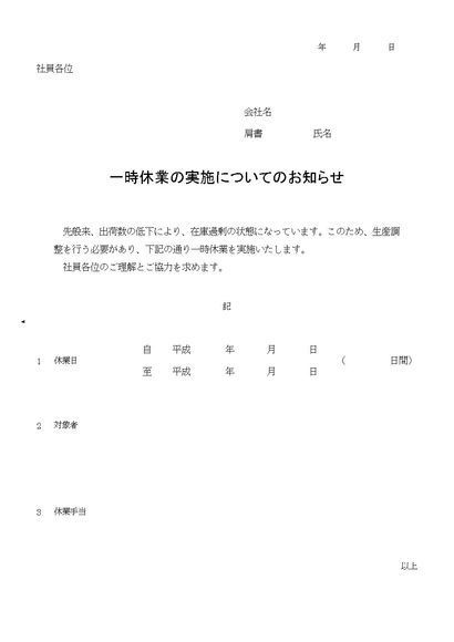 一時休業発表文