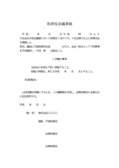 取締役会議事録(本店所在地移転)