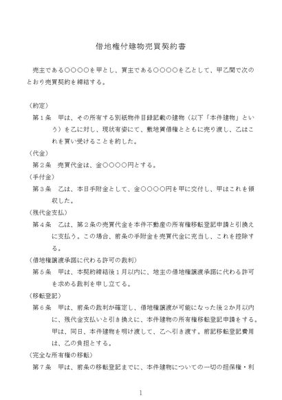 借地権付建物売買契約書