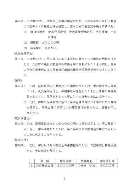 継続的売買契約書(担保設定付)