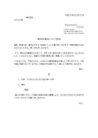 招待状(謝恩祝賀会)