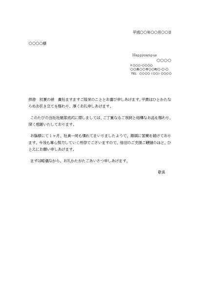 礼状(新社屋落成式出席に対して)