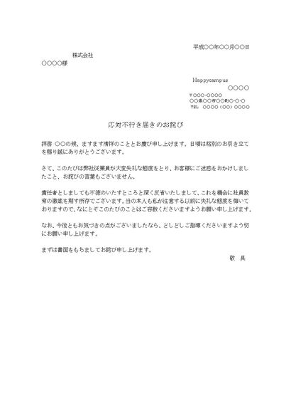 詫び状(社員の不始末に対して)