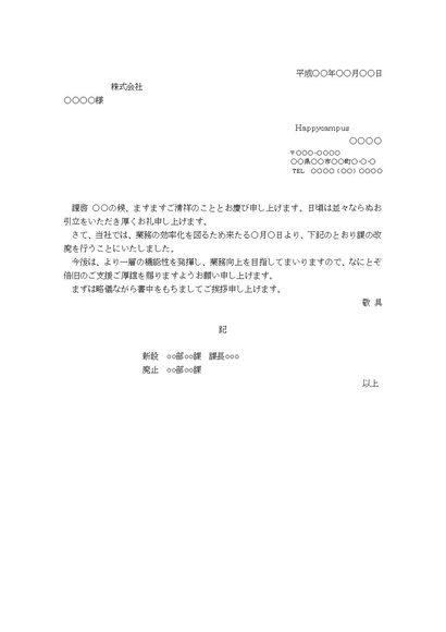 挨拶状(組織変更) HAPPYCAMPUS menu