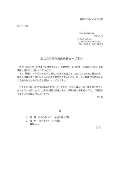 案内状(創立記念祝賀会)