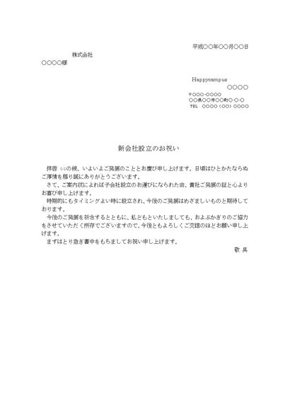 祝賀状(子会社設立)