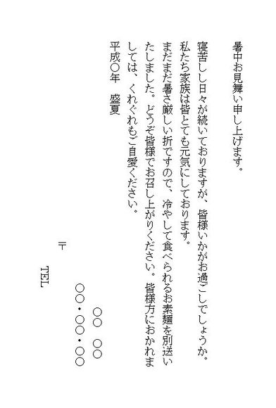 暑中見舞い文例(友人へお中元送付のお知らせ)