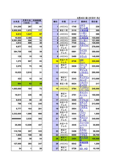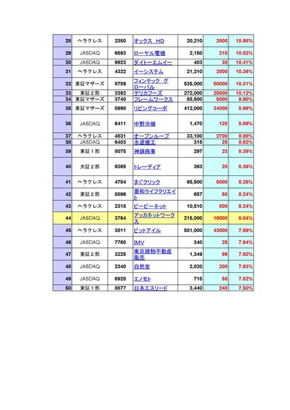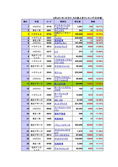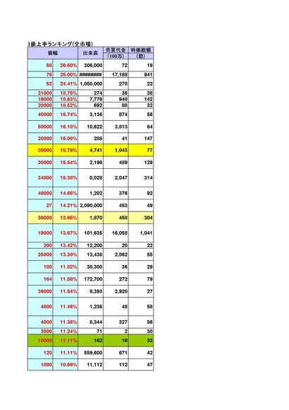 当日値上がり率ランキング