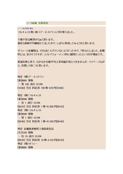 2008年7月4日 株式売買状況