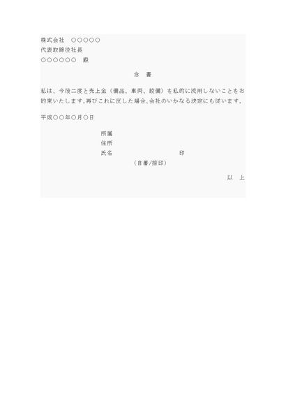 念書(私的流用をしない旨)