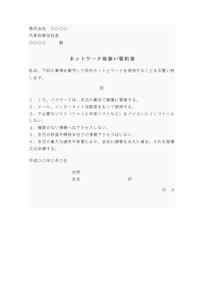 誓約書(社内ネットワーク取扱)
