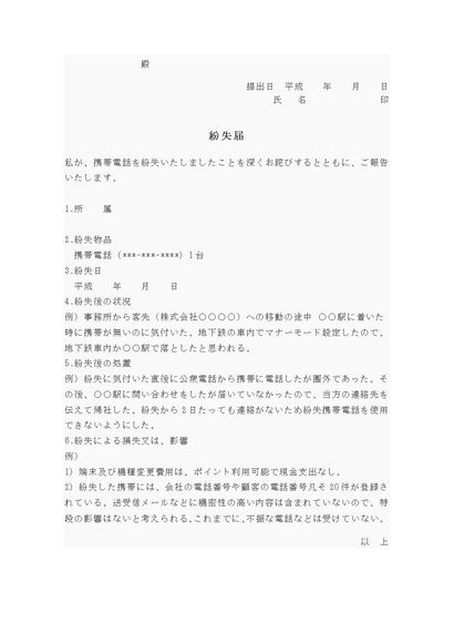 紛失届(携帯電話)
