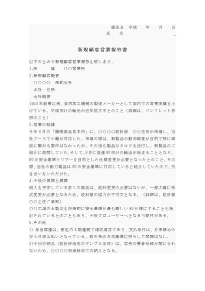 新規顧客営業報告書