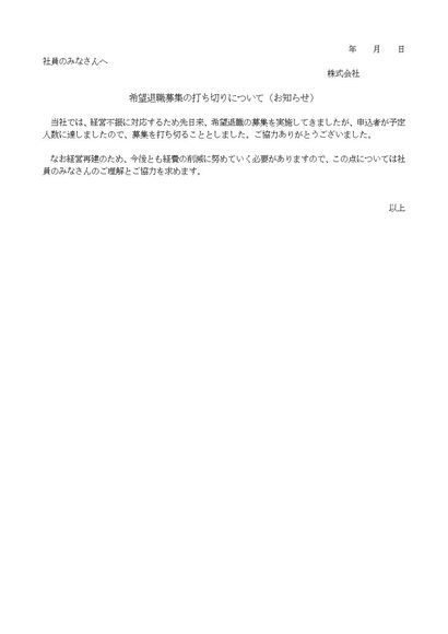 希望退職募集の打ち切りについて