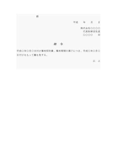 辞令(期間満了退職)