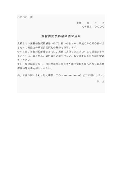業務委託契約解除許可通知書