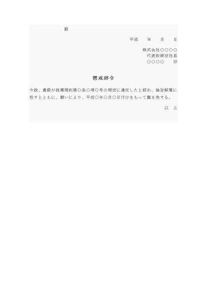 論旨解雇懲戒辞令