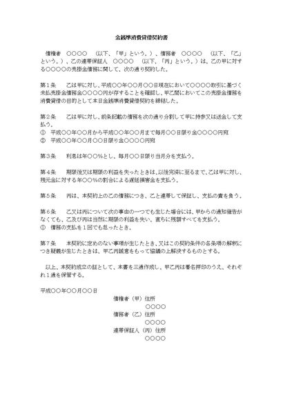 金銭準消費貸借契約書