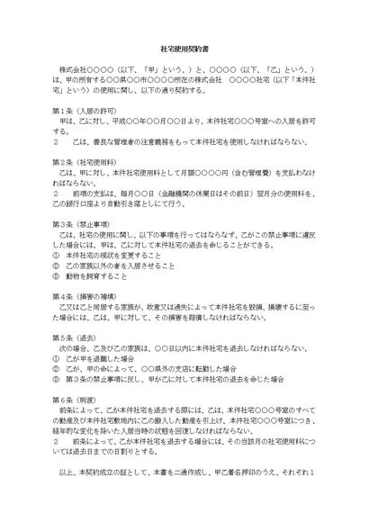 社宅使用契約書