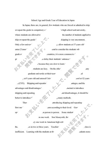 School Age and Grade Year of Education in Japan