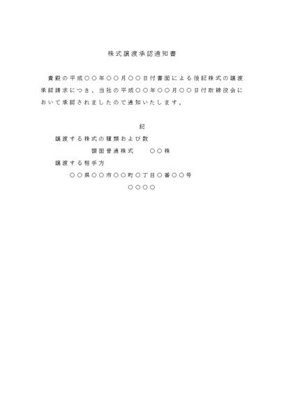 株式譲渡承認通知書