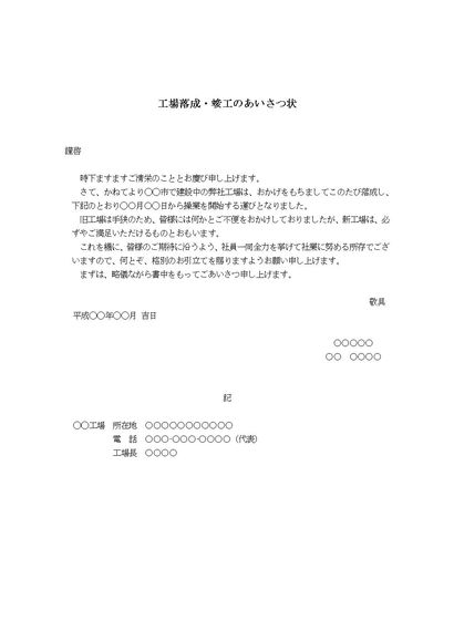 挨拶状(工場落成) HAPPYCAMPUS menu