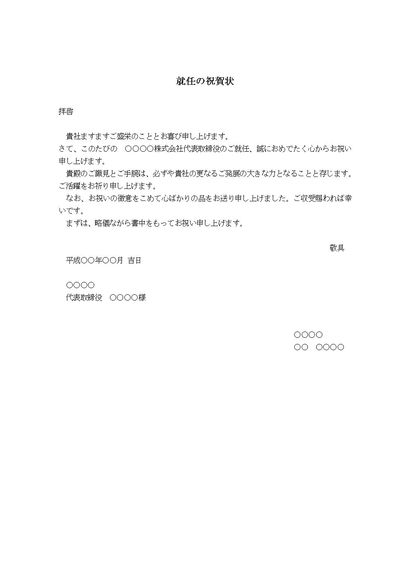 祝賀状(社長就任)