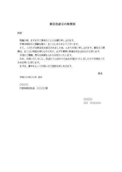 祝賀状(新会社設立に対して)