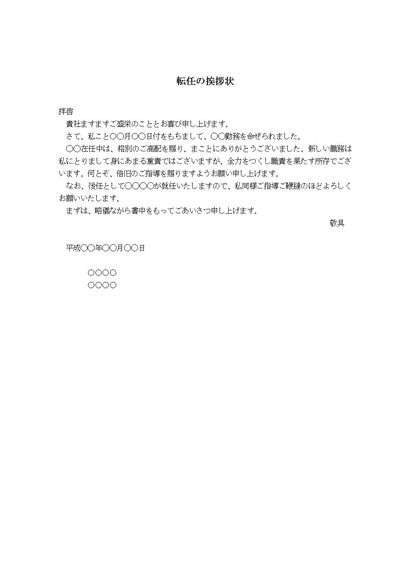 挨拶状(転任)