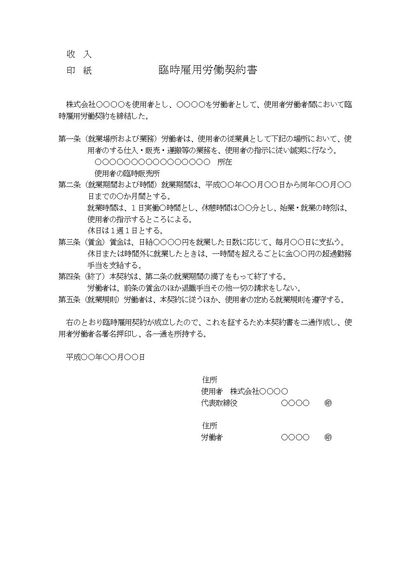 臨時雇用労働契約書