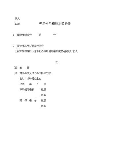 商標専用使用権設定契約書