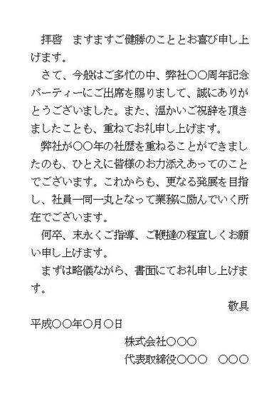 パーティ出席のお礼
