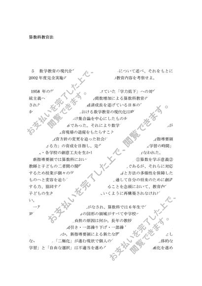 算数科教育法,科目最終試験、現代化時代の算数科の教育内容について
