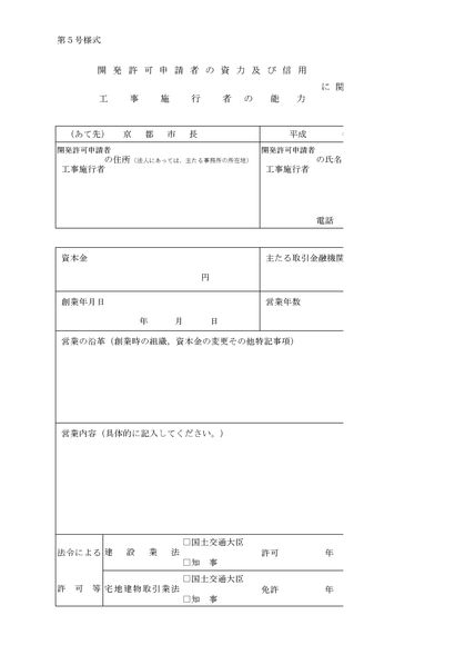 開発許可申請書の資力及び信用に関する申告書(京都市)