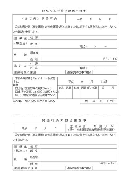 開発行為非該当確認申請書(京都市)