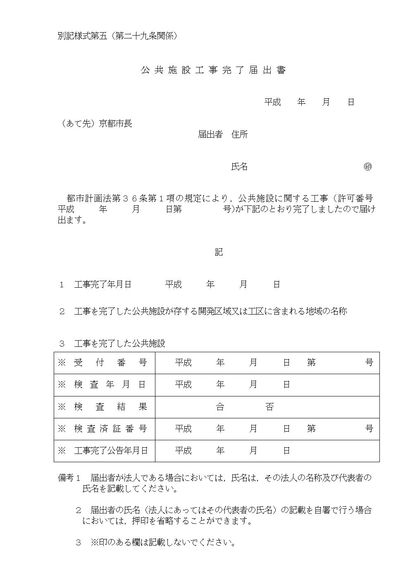 公共施設工事完了届出書(京都市)