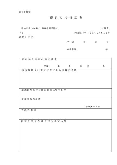 優良宅地認定書(京都市)
