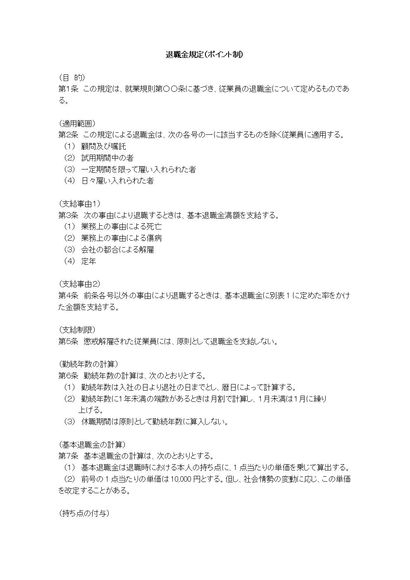 ポイント制退職金規程