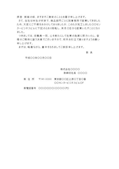 会社移転の挨拶状